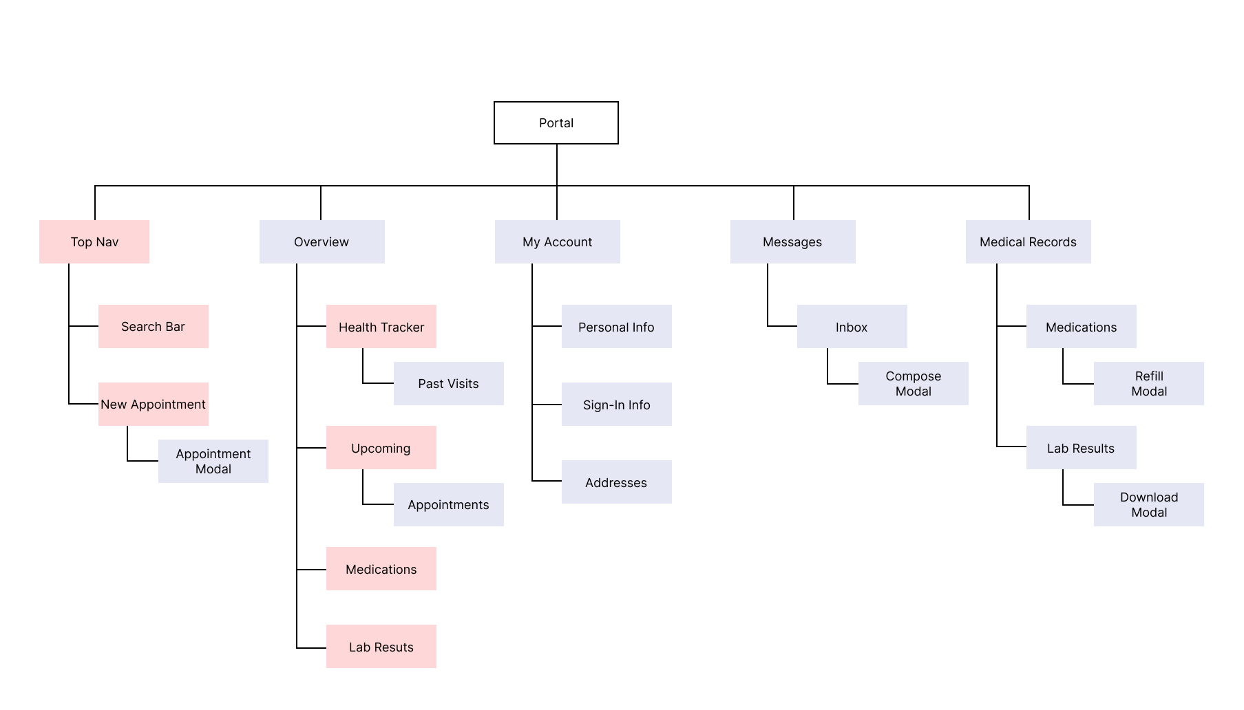 After analyzing the gathered data, the stakeholders and I have decided on 6 key tasks. It became evident that our objective was not only to design a user-friendly portal but also to create 2 new features: scheduling new appointment and tracking progress for doctor visits.
