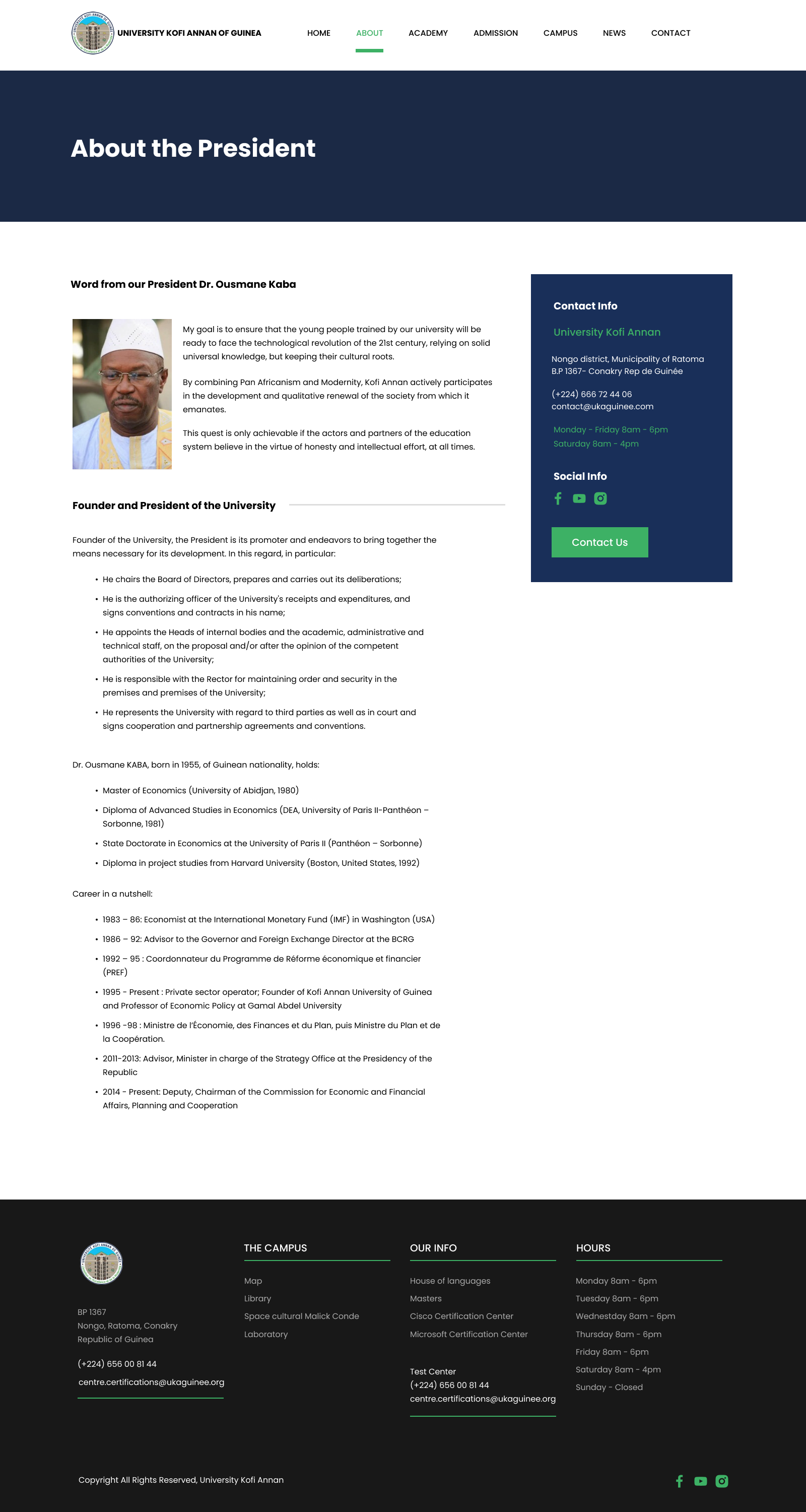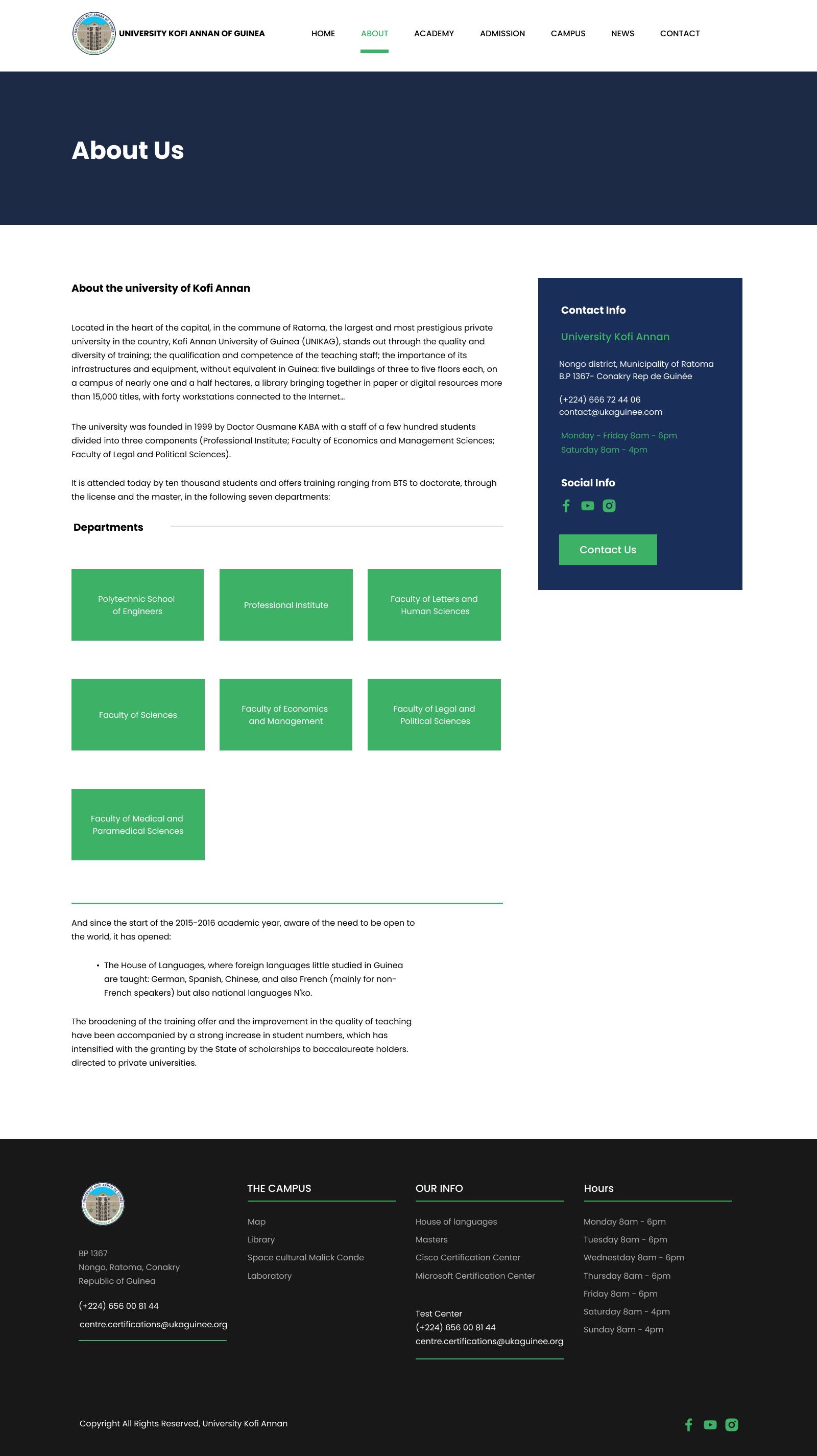 University Kofi Annan is the largest and most prestigious private university in the republic of Guinea Conakry.