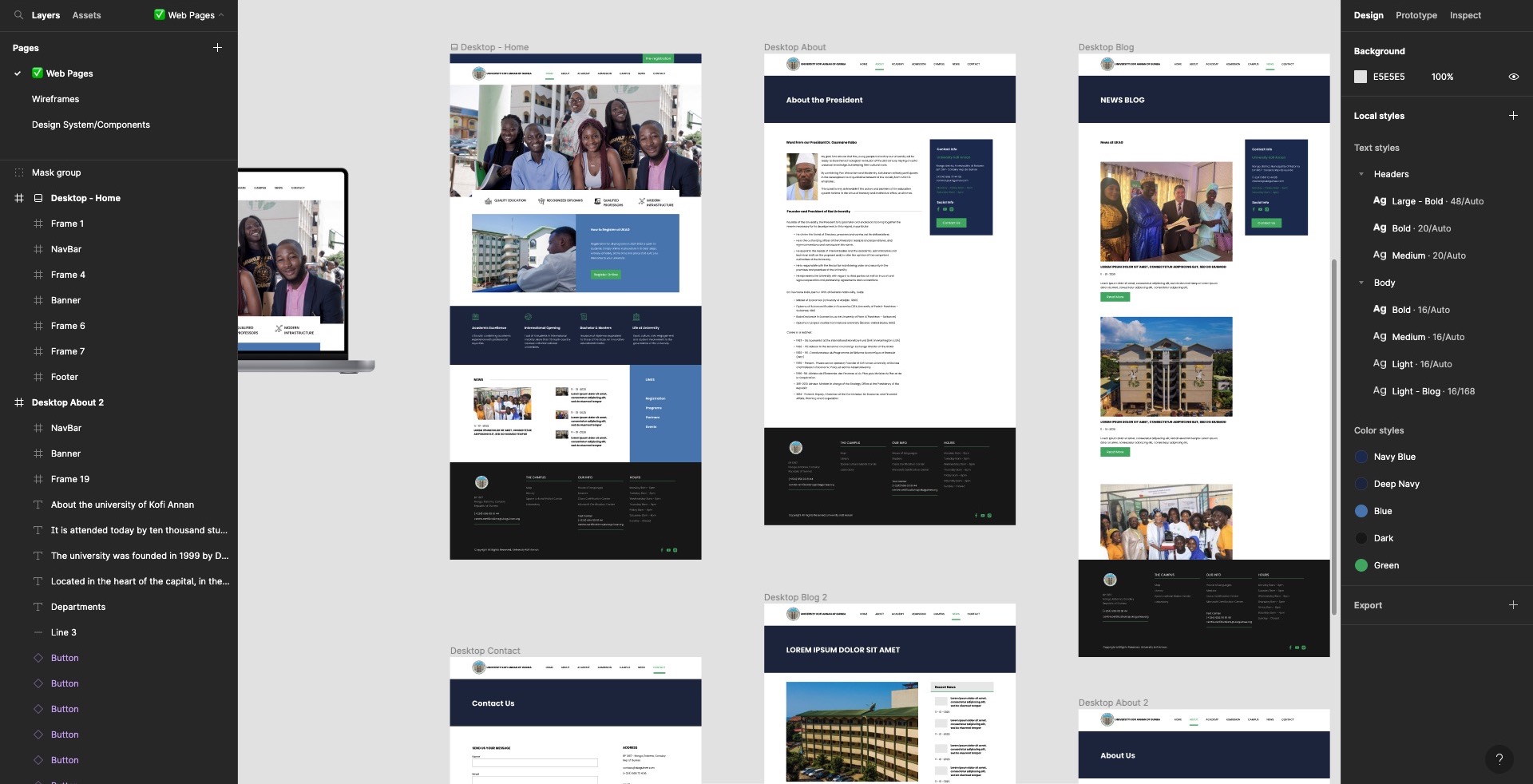 Screenshot of webpages in Figma