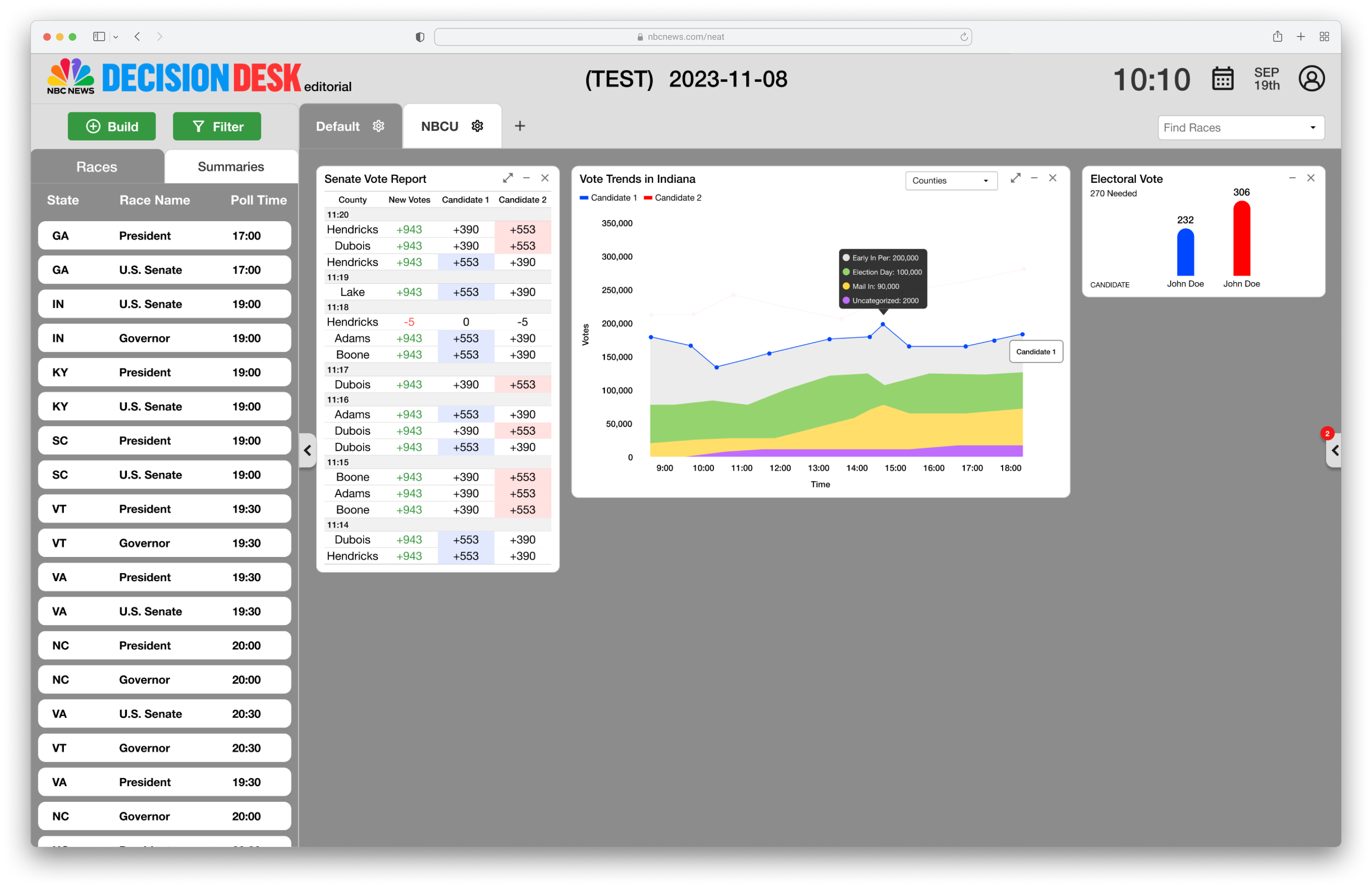 NEAT Editorial is NBC's best-in-class analytics internal tools that drives award-winning Elections Coverage.